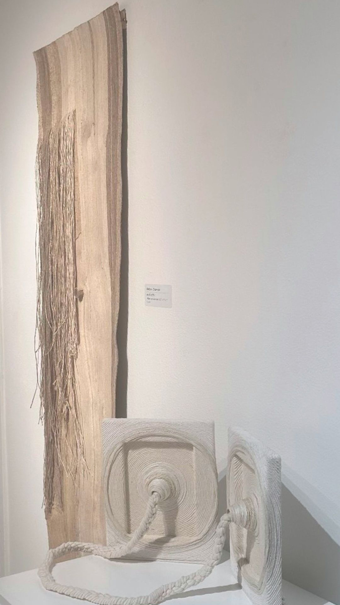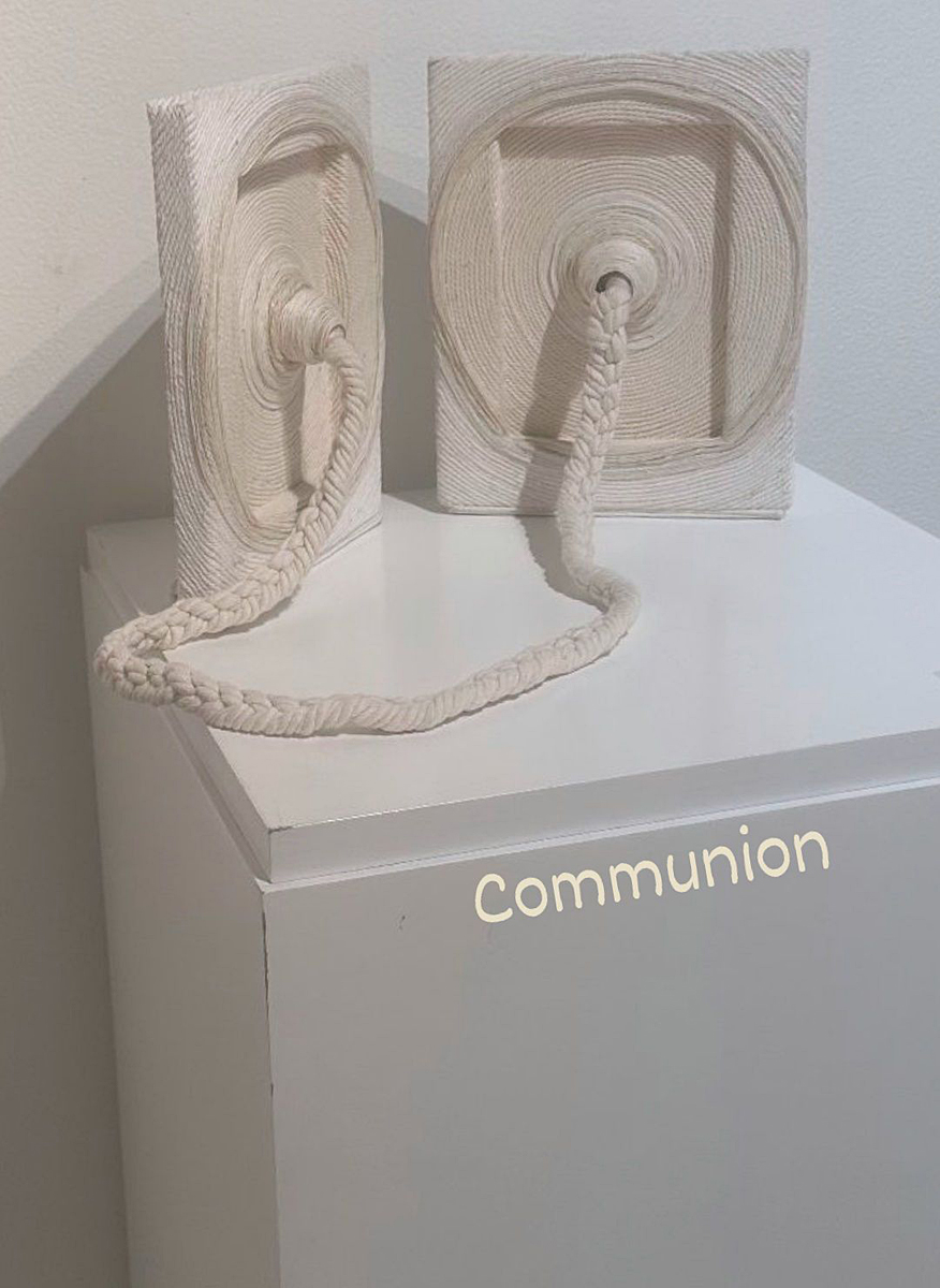 Rent Wound Tear, Mend Heal Repair, 2022, 64 x 68″ (dimensions variable), Triptych Installation, (canvas, acrylic paint, hemp cord, lace, string)