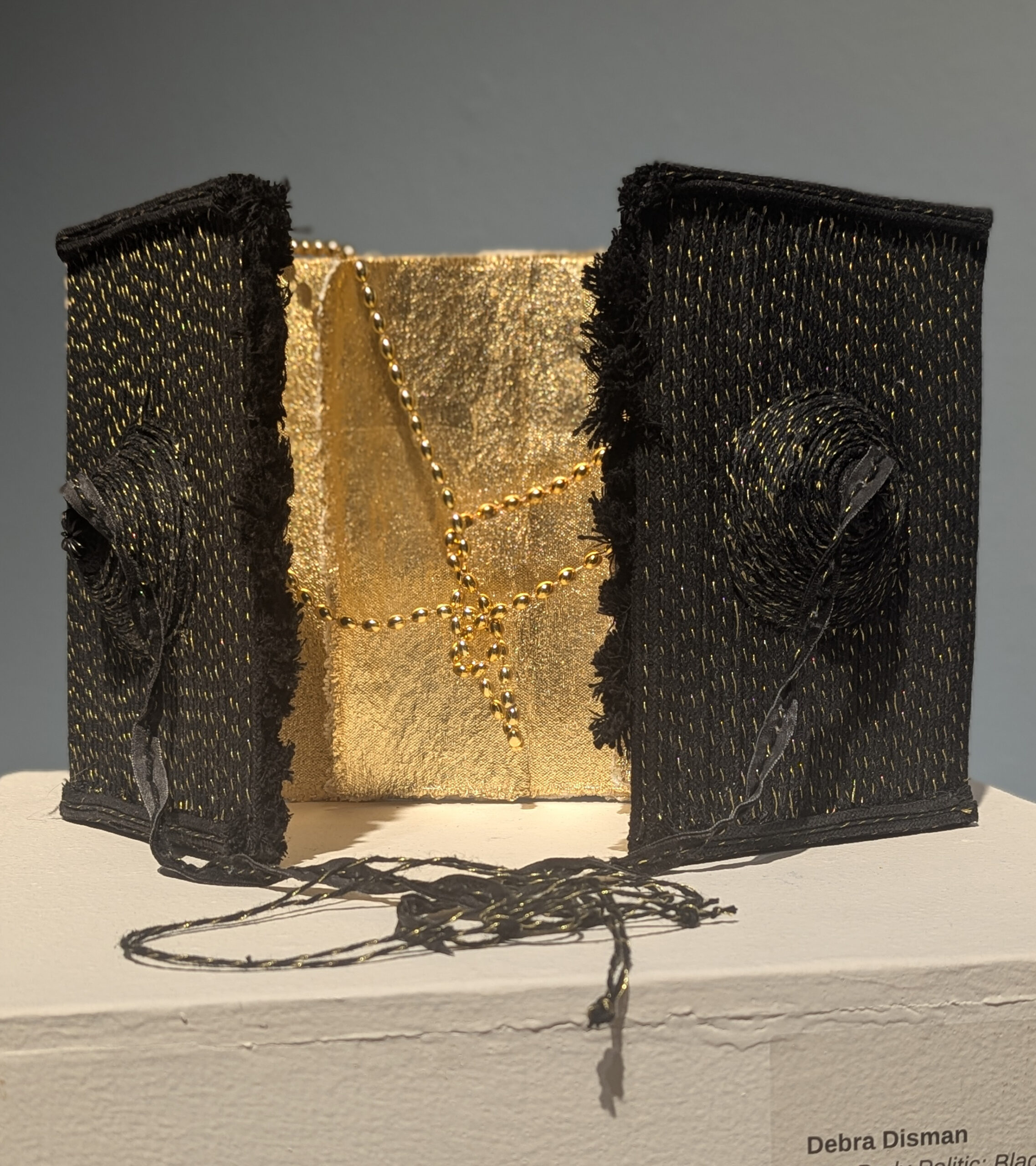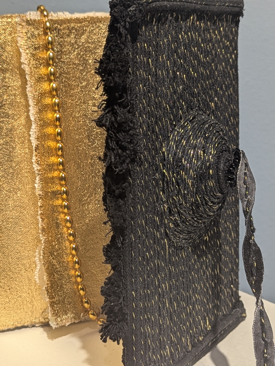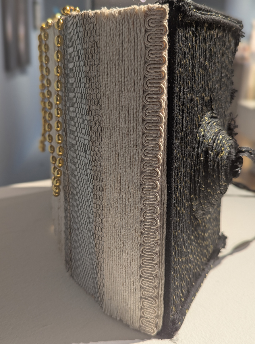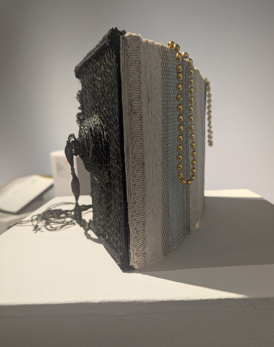 Reading Color Reading Color I, 8.75 x 13.25 x 6.25″, mixed media/artists’ book (denim, acrylic paint, board, hemp cord)