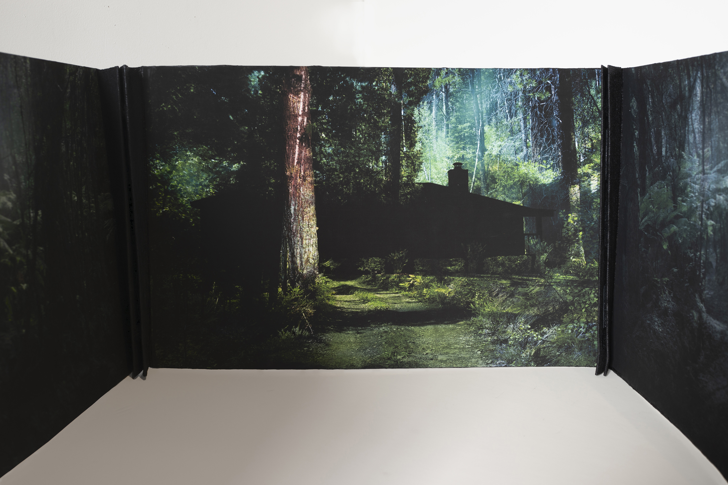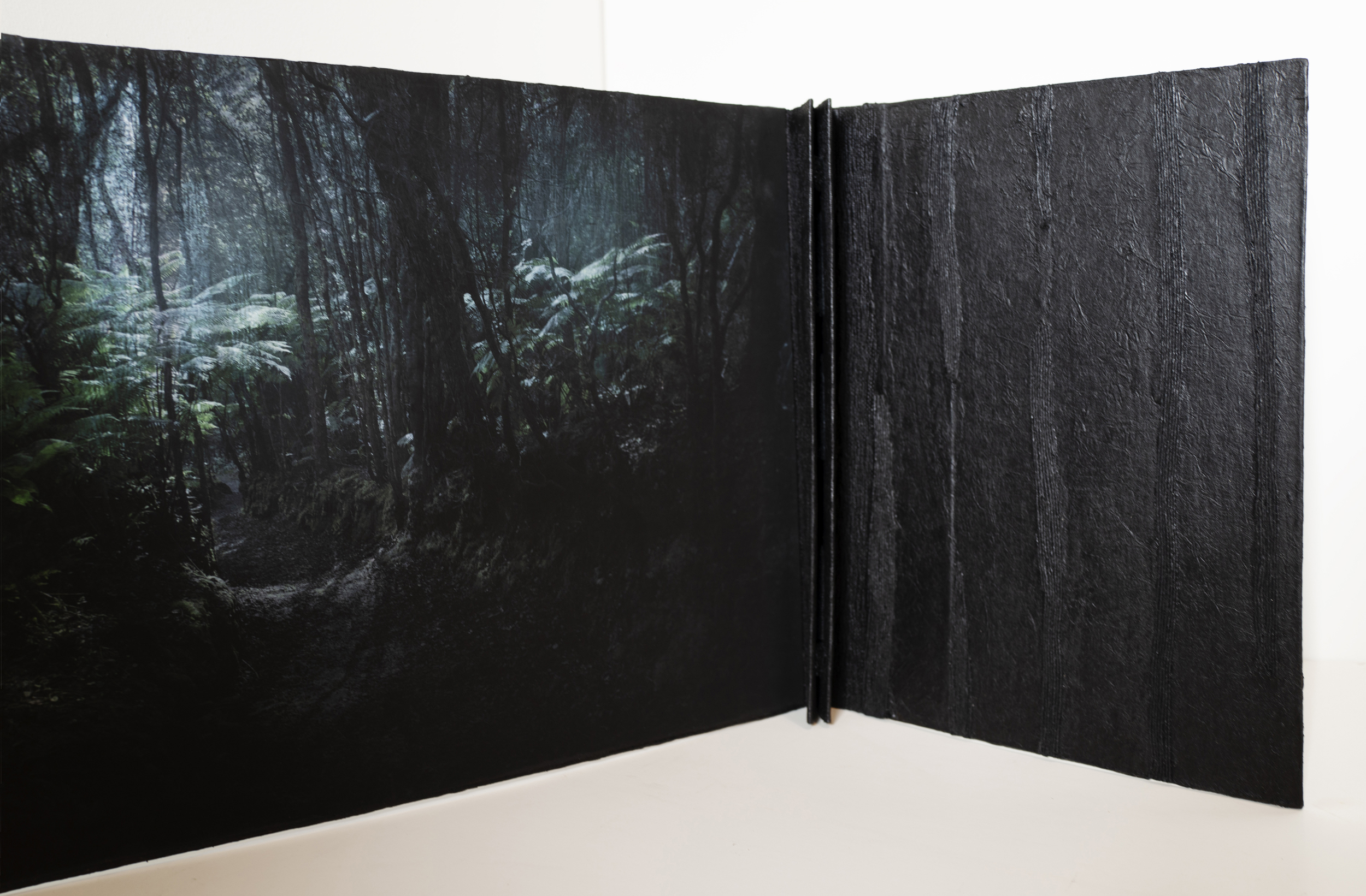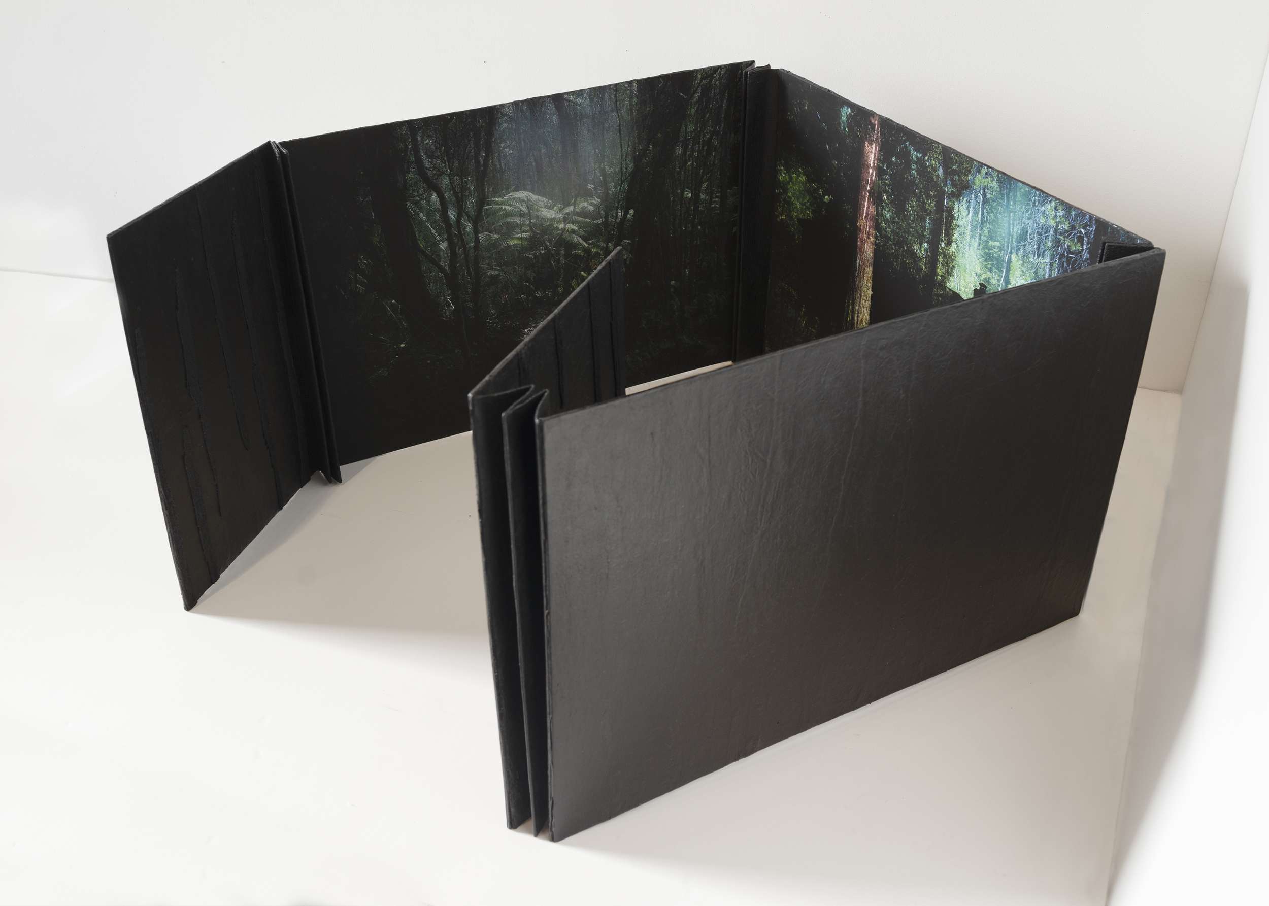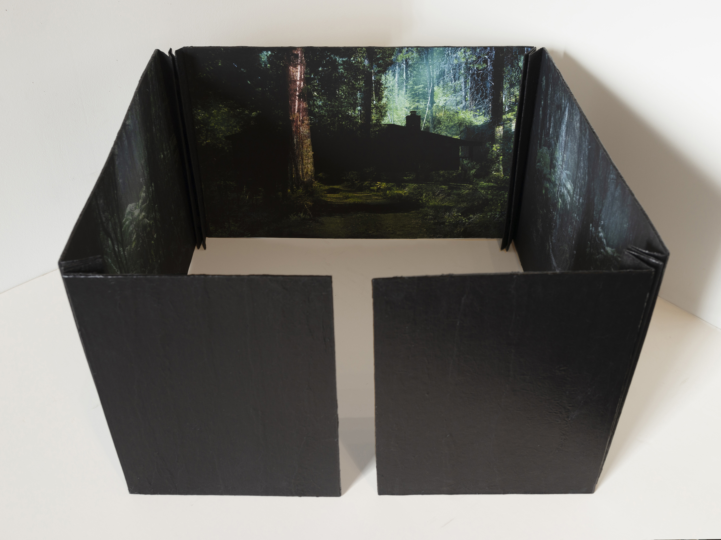 Reading Color Reading Color I, 8.75 x 13.25 x 6.25″, mixed media/artists’ book (denim, acrylic paint, board, hemp cord)